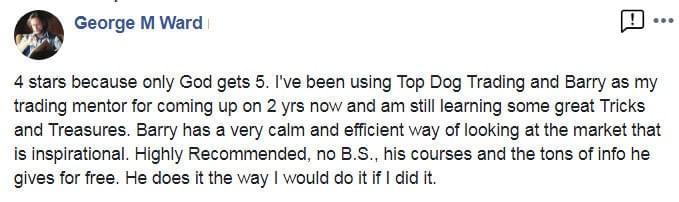 In addition, I hired three professional traders to mentor me personally, and even went to Chicago to work with a former floor trader at the Chicago Mercantile Exchange. All of this research and study resulted in insights which eventually led to the development of my own Top Dog Trading methodology.
